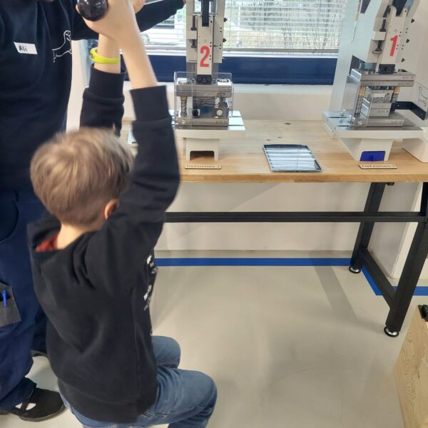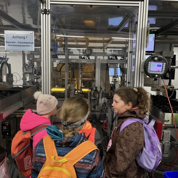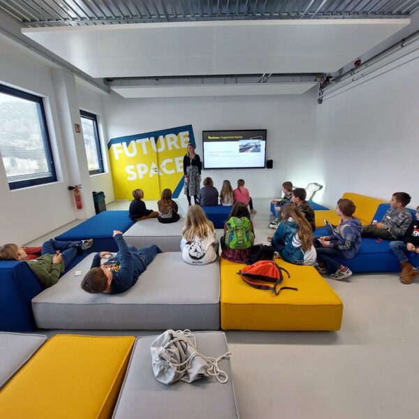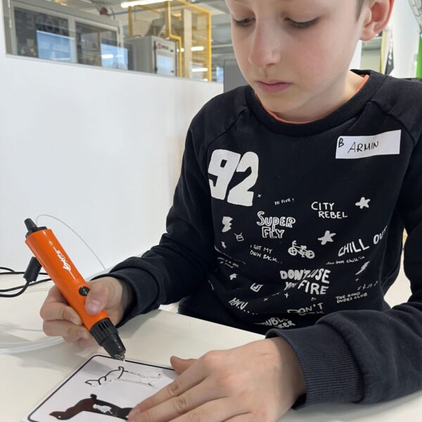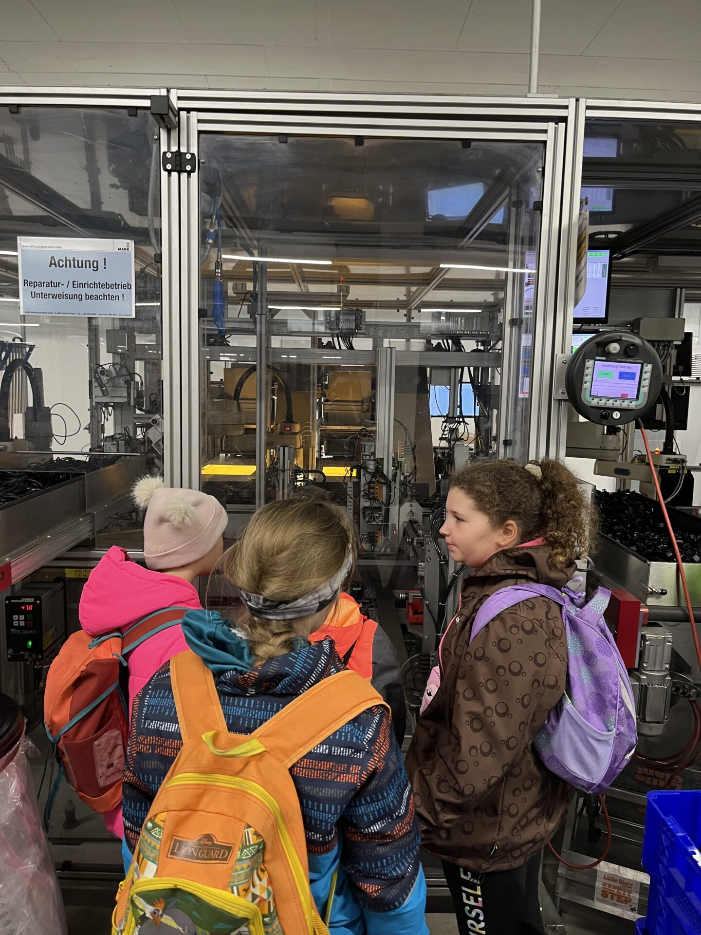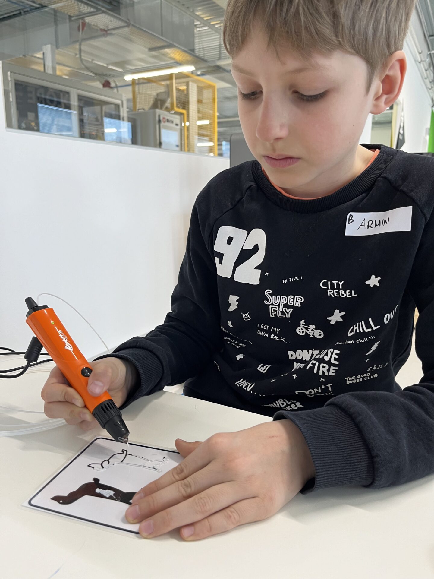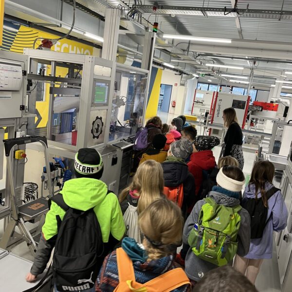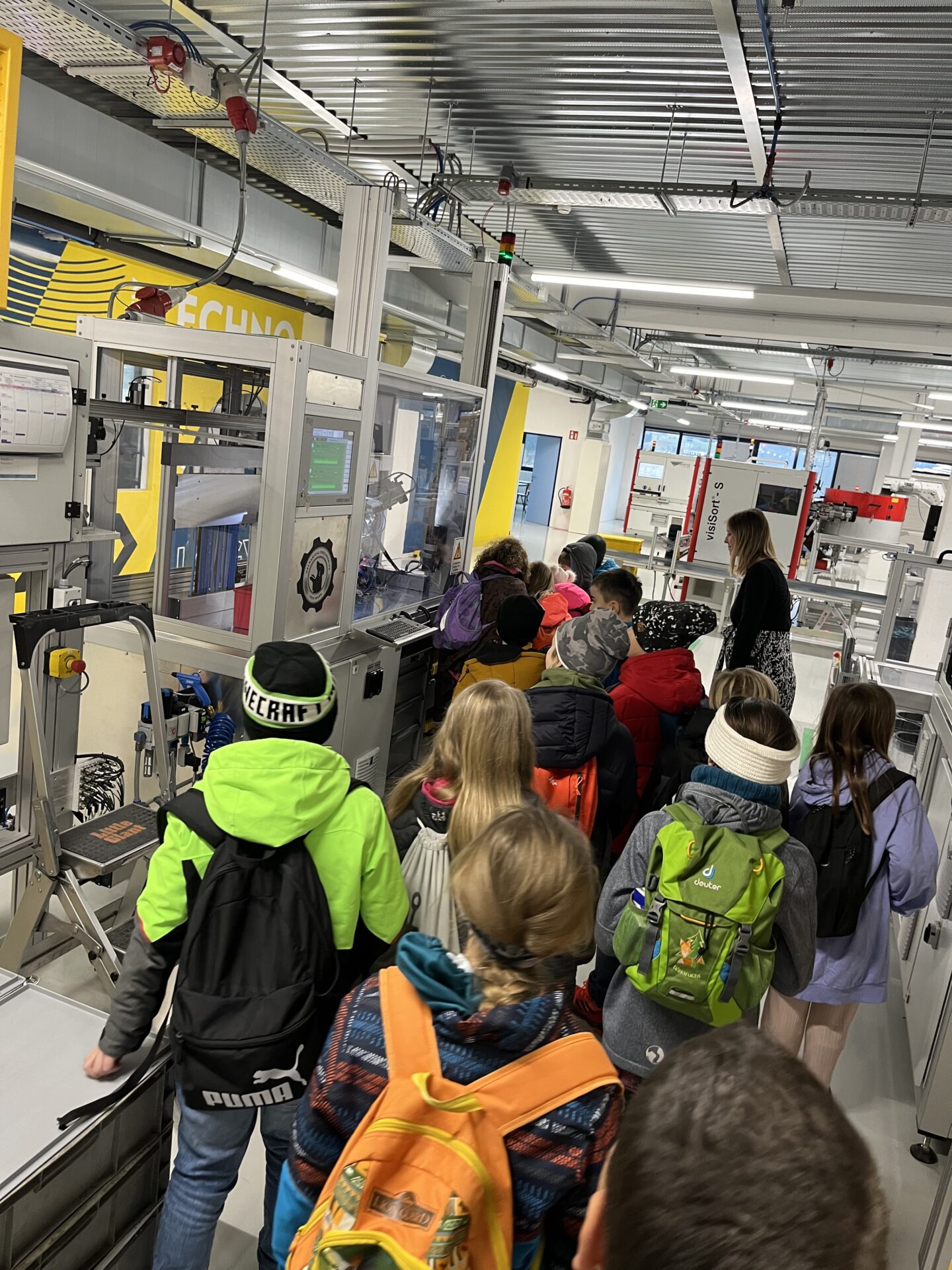 Nach einer kurzweiligen Busfahrt ging es auch schon richtig los. Wir starteten mit einer kurzen Betriebsführung und durften einen Blick auf Maschinen und Roboter werfen. Danach waren wir schon im Future Space. In Teams durften wir die verschiedenen Stationen ausprobieren. Wir gestalteten eigene 3D Bilder mit einem 3D Stift, druckten Schokolade mit dem 3D Drucker, erstellten Geschichten und Bilder mit ChatGPT, beschäftigten uns mit einem SMART Home-System, drehten Filme mit einem Greenscreen, “matchten” uns im Coding-Fußball und vieles mehr. Ein Highlight war das MARK Lab, wo wir unsere eigene Taschenlampe herstellten. Zuerst “Tiefziehen” und dann schrauben…schon war unsere Taschenlampe fertig.