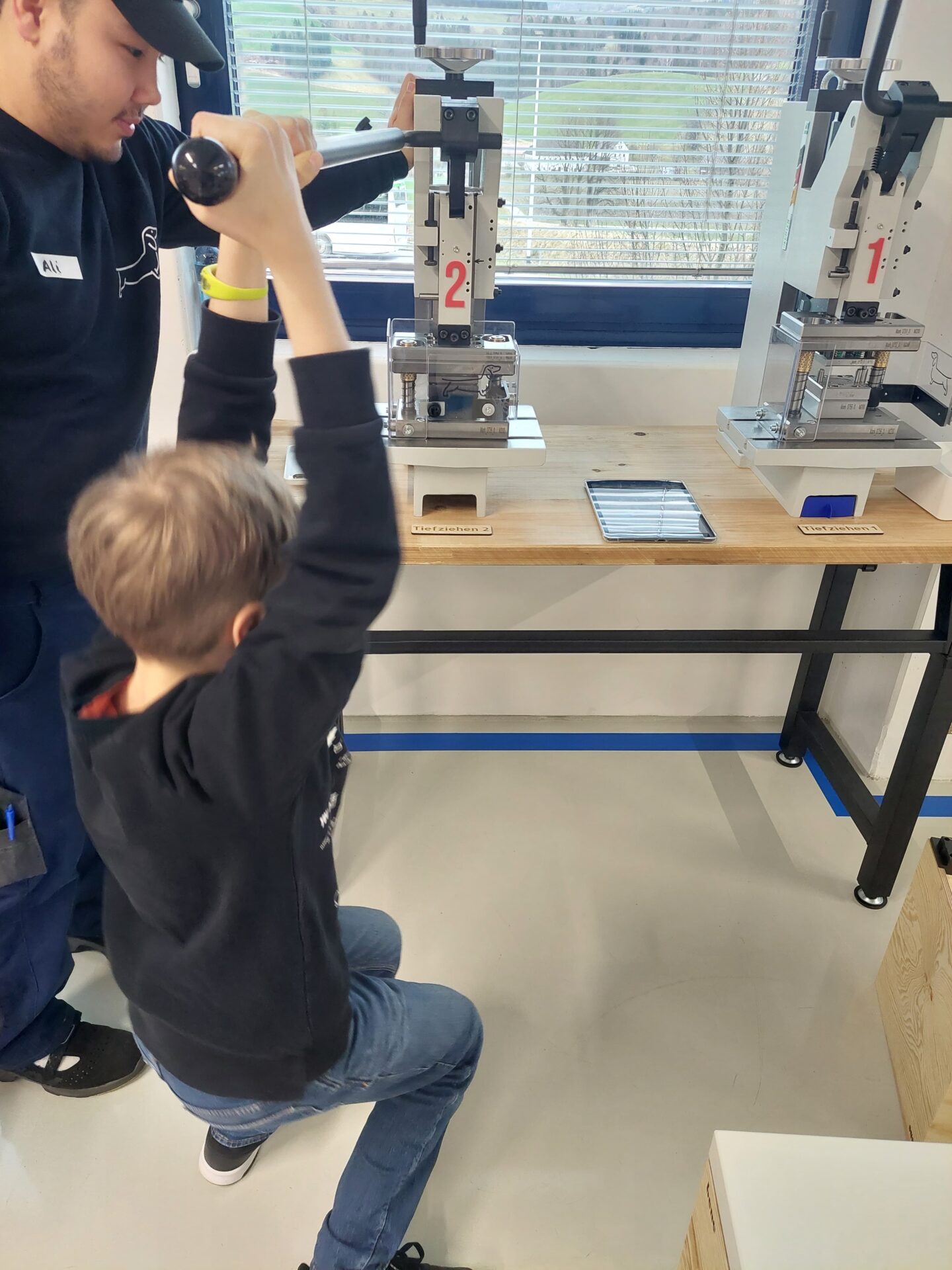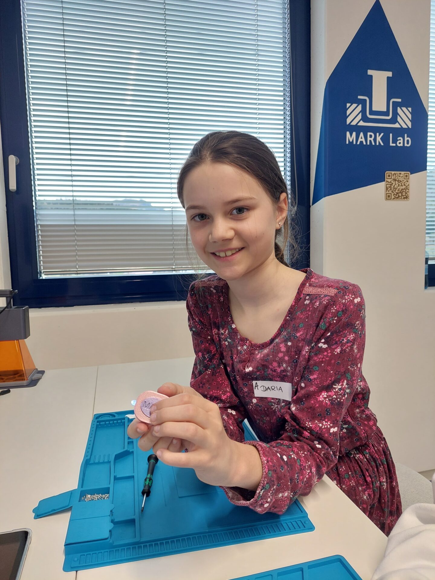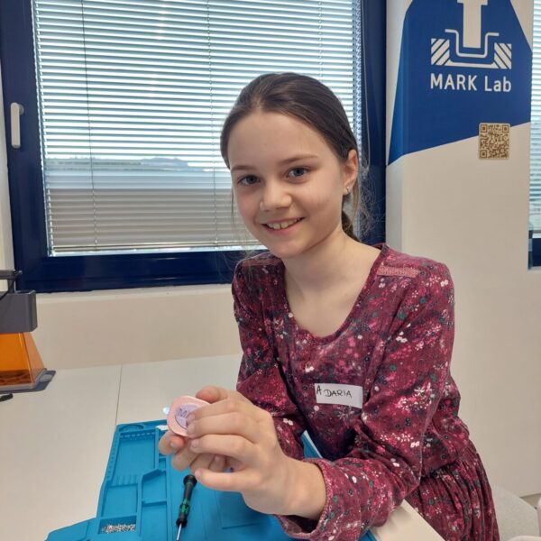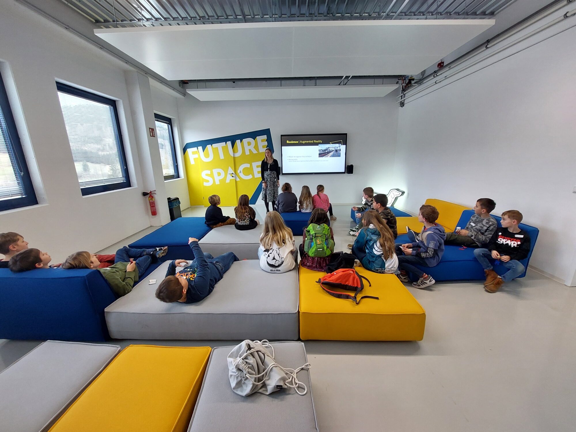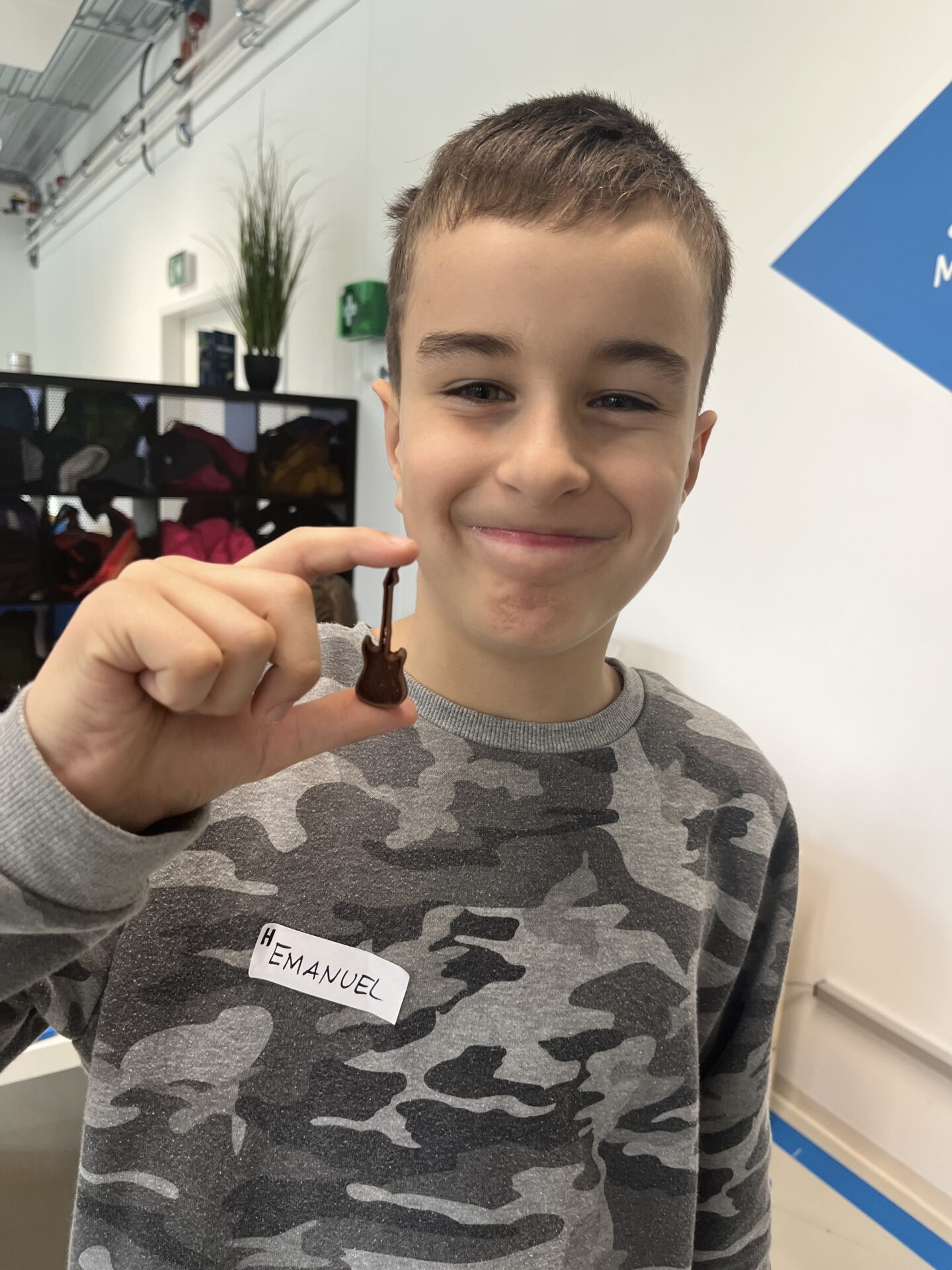 Nach einer kurzweiligen Busfahrt ging es auch schon richtig los. Wir starteten mit einer kurzen Betriebsführung und durften einen Blick auf Maschinen und Roboter werfen. Danach waren wir schon im Future Space. In Teams durften wir die verschiedenen Stationen ausprobieren. Wir gestalteten eigene 3D Bilder mit einem 3D Stift, druckten Schokolade mit dem 3D Drucker, erstellten Geschichten und Bilder mit ChatGPT, beschäftigten uns mit einem SMART Home-System, drehten Filme mit einem Greenscreen, “matchten” uns im Coding-Fußball und vieles mehr. Ein Highlight war das MARK Lab, wo wir unsere eigene Taschenlampe herstellten. Zuerst “Tiefziehen” und dann schrauben…schon war unsere Taschenlampe fertig.