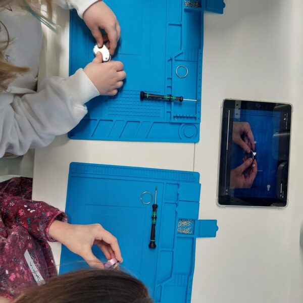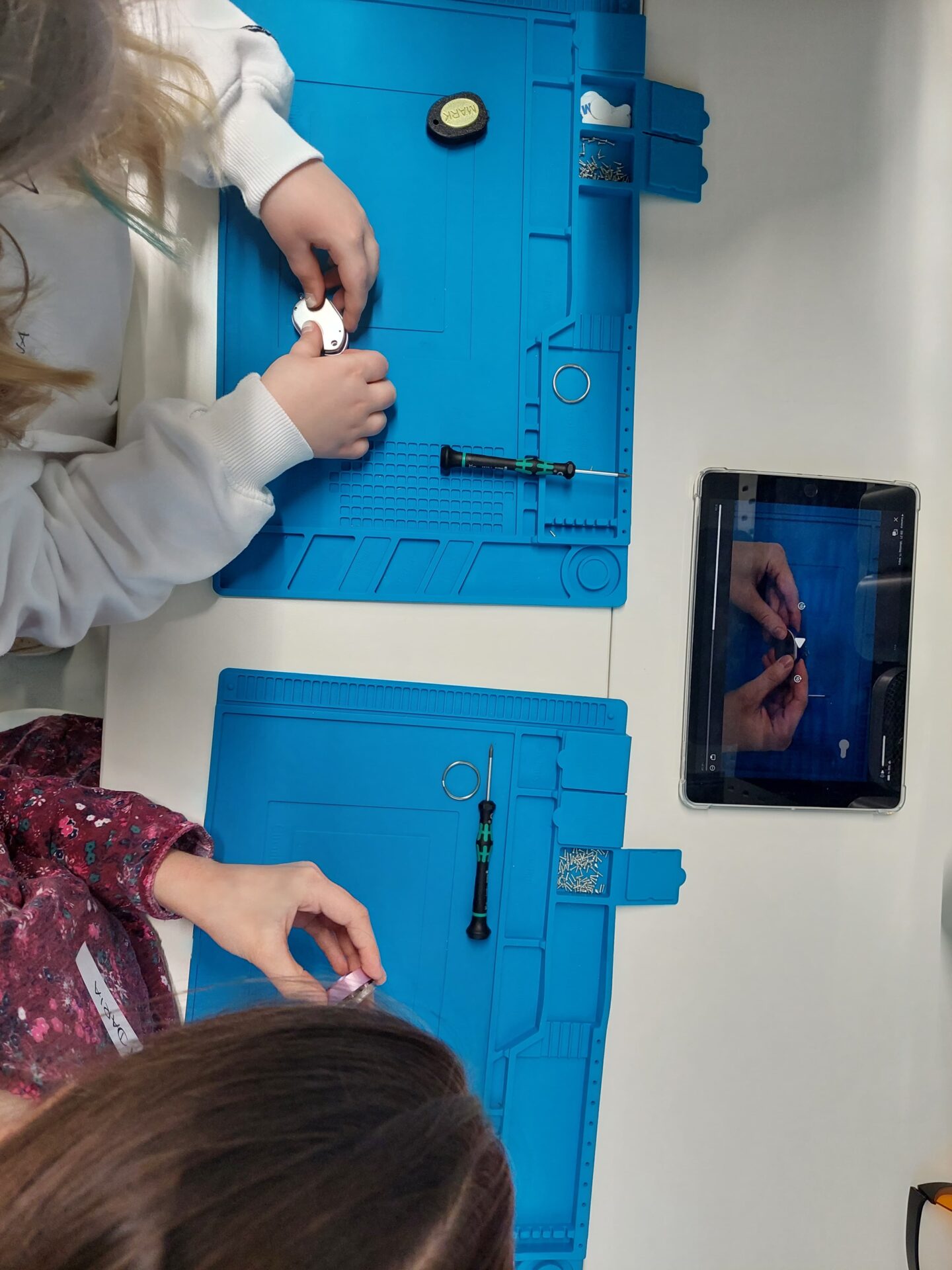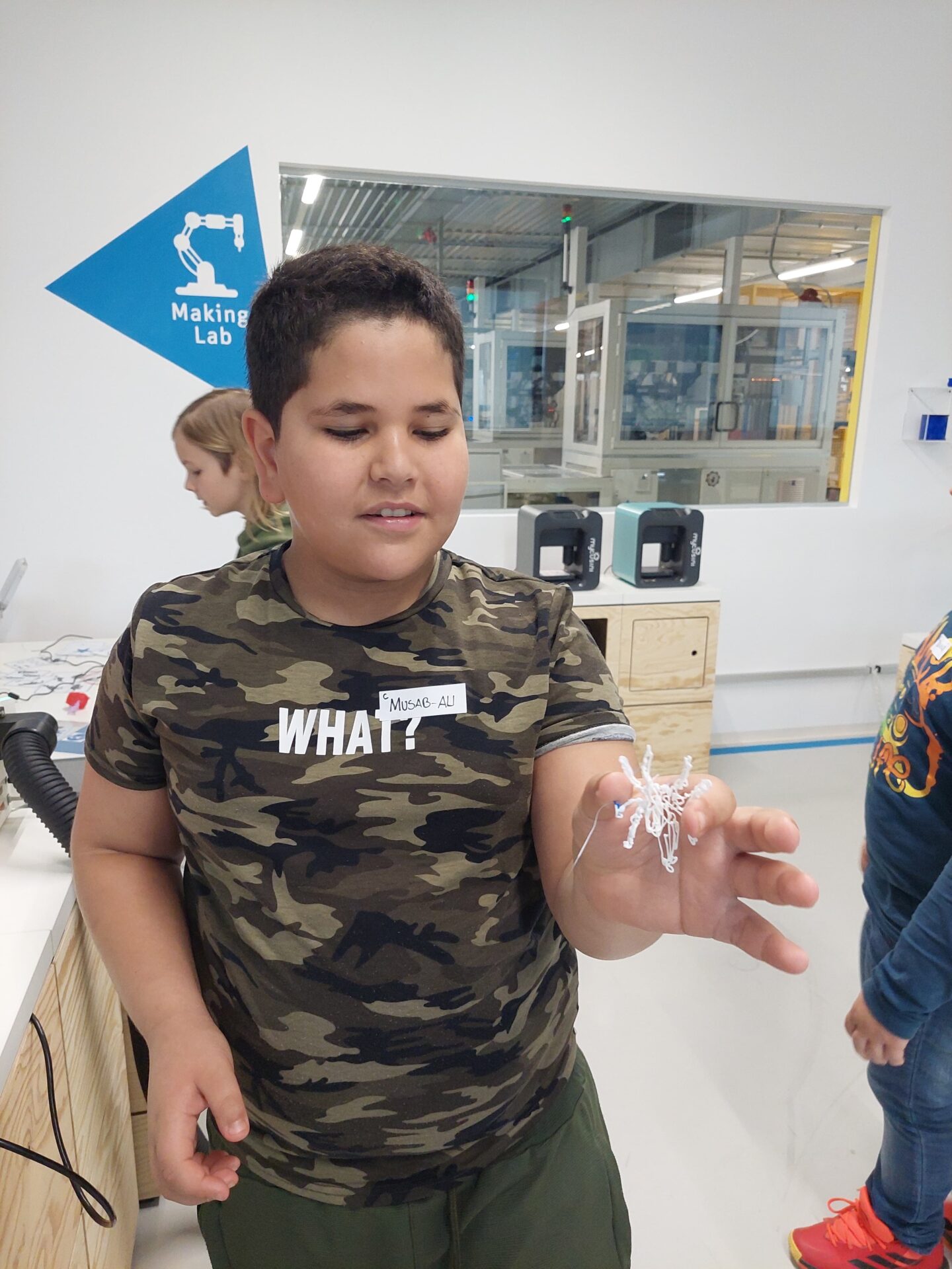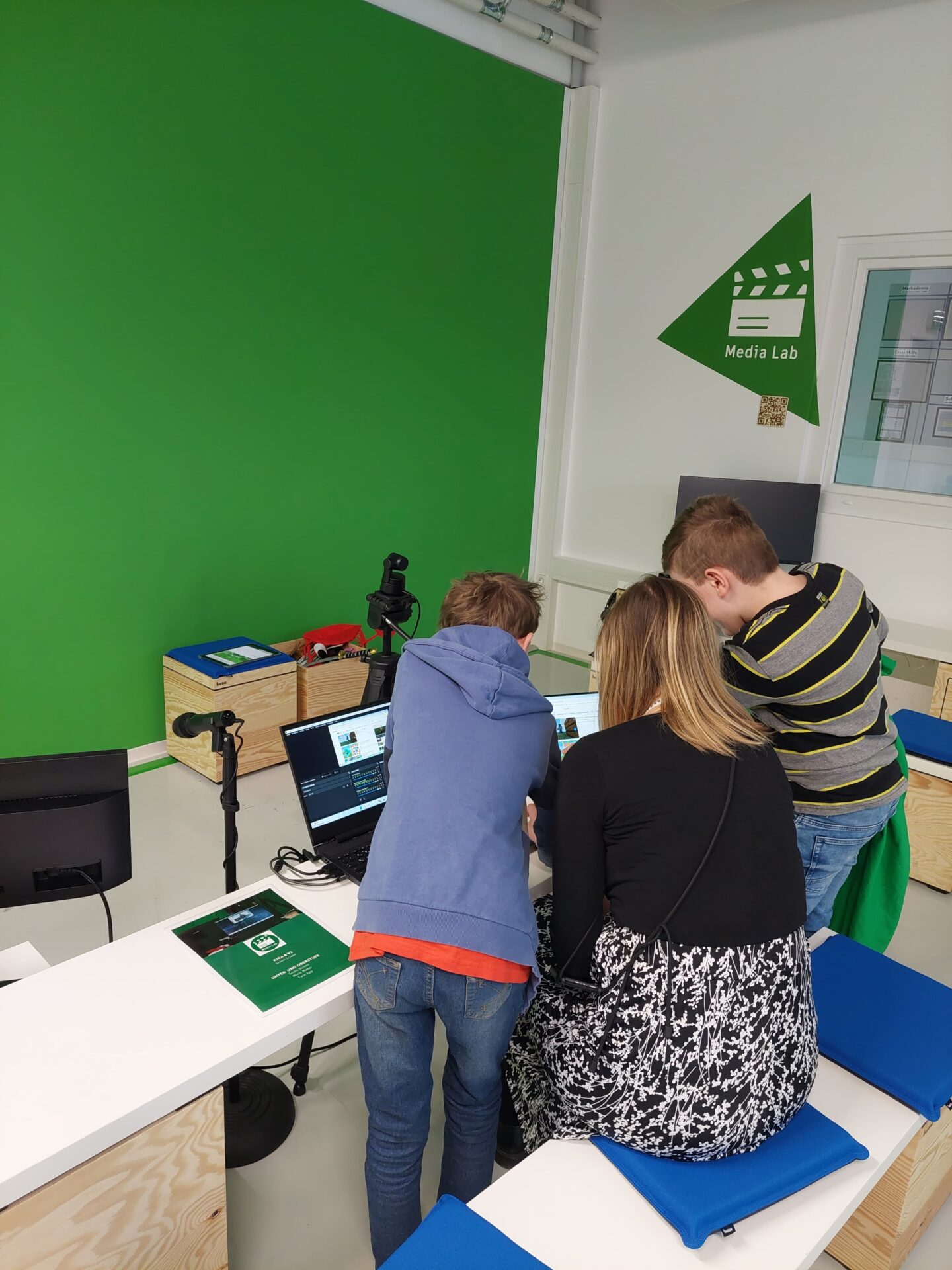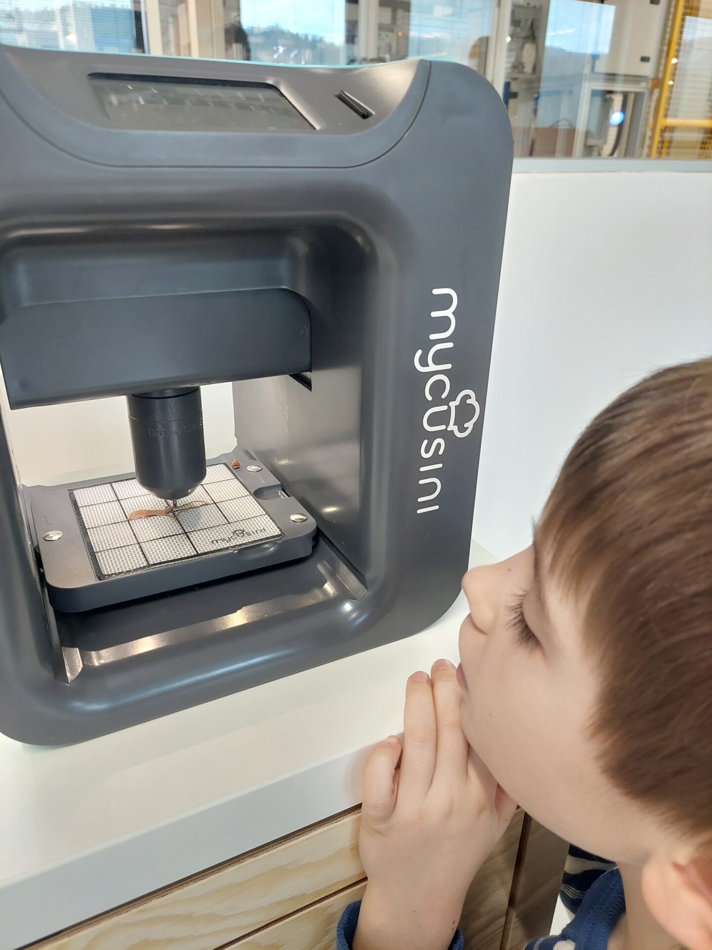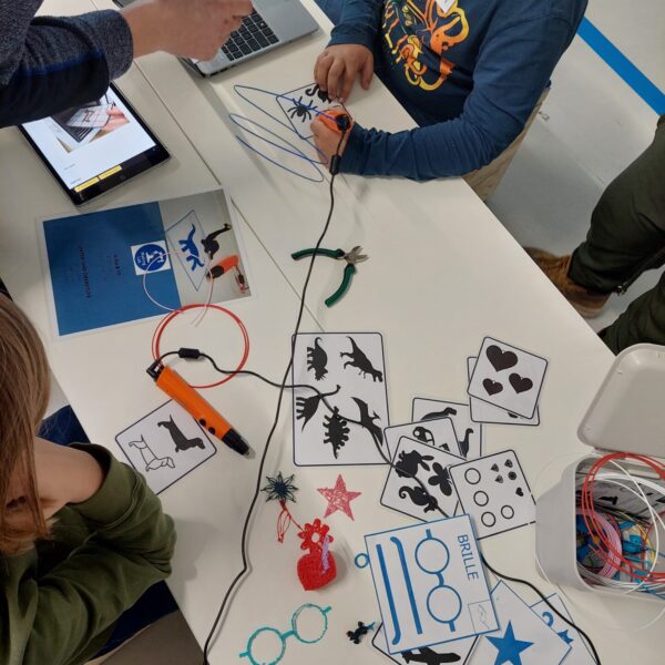 Nach einer kurzweiligen Busfahrt ging es auch schon richtig los. Wir starteten mit einer kurzen Betriebsführung und durften einen Blick auf Maschinen und Roboter werfen. Danach waren wir schon im Future Space. In Teams durften wir die verschiedenen Stationen ausprobieren. Wir gestalteten eigene 3D Bilder mit einem 3D Stift, druckten Schokolade mit dem 3D Drucker, erstellten Geschichten und Bilder mit ChatGPT, beschäftigten uns mit einem SMART Home-System, drehten Filme mit einem Greenscreen, “matchten” uns im Coding-Fußball und vieles mehr. Ein Highlight war das MARK Lab, wo wir unsere eigene Taschenlampe herstellten. Zuerst “Tiefziehen” und dann schrauben…schon war unsere Taschenlampe fertig.